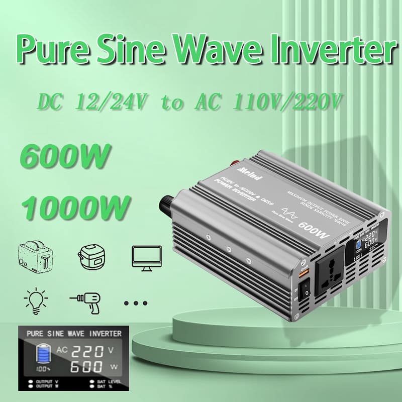 1000W DC 12V/24V/48V to AC 110V/220V Pure Sine Wave Power Inverter with LCD Display